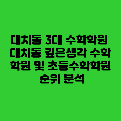 대치동 3대 수학학원 대치동 깊은생각 수학학원 및 초등수학학원 순위 분석